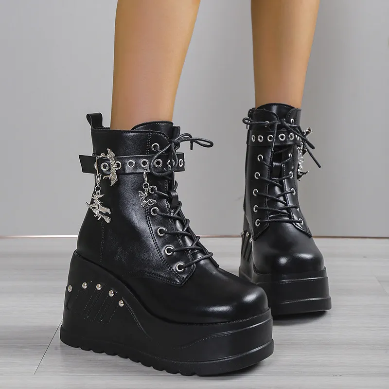 gothic boots, platform gothic boots, studded gothic boots, lace-up gothic boots, leather gothic boots, alternative fashion footwear, dark fashion boots, edgy boots, gothic footwear, punk boots