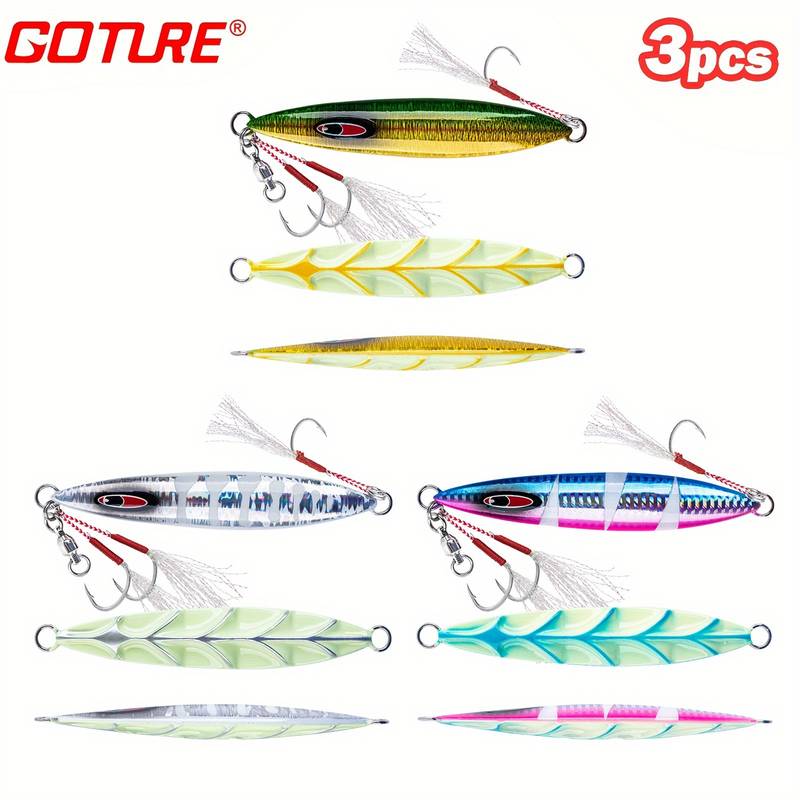 Goture 3pcs Glow-in-the-Dark Slow Casting Jig – Versatile Fishing Lures for Saltwater and Freshwater Fishing