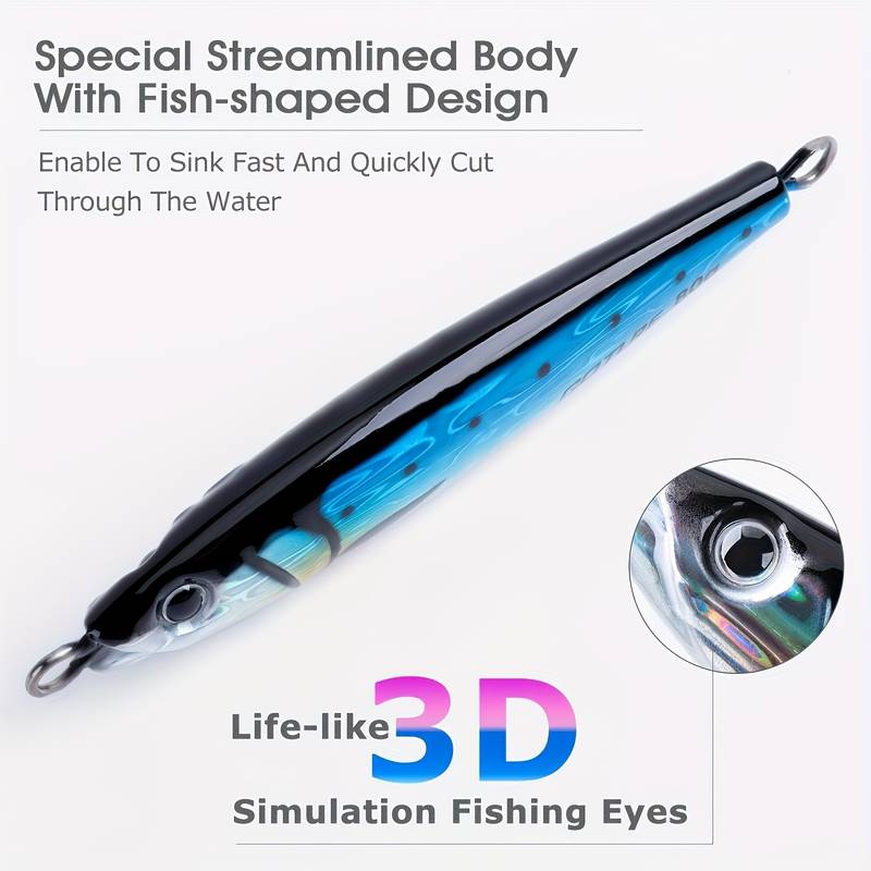 The jigs are designed for quick drop action, which is ideal for deep-sea fishing or vertical jigging. This feature is perfect for catching aggressive species like tuna, snapper, and salmon, ensuring that you can target deep-water fish effectively.