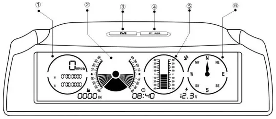 ① Speed / Latitude& Longitude ② Roll Angle ③ Setting Button ④ Start Button