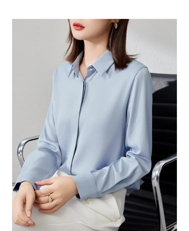 Graceful Satin Top OL Business Clothing Shirt For Women
