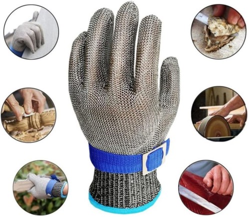 El guante de corte se puede usar para cortar carne, pescar, abrir ostras, cortar mandolina, tallar madera, jardinería y trabajos de construcción.