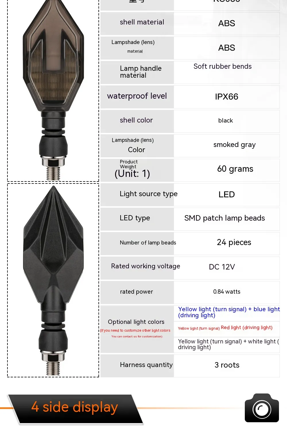 ¿Buscas direccionales llamativas y de alto rendimiento para tu motocicleta? Nuestras direccionales y luces diurnas LED bicolor con guía de luz en forma de flecha ofrecen una actualización moderna y elegante, a la vez que garantizan la máxima seguridad vial.