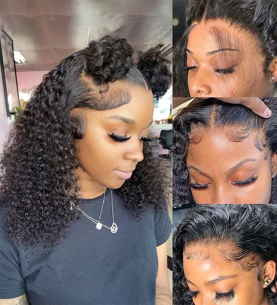 Hair Color: #1B, Ships From: CHINA, Stretched Length: 16inches, Density: 180% - Wear and Go Water Wave Glueless Bob Wigs Pre-plucked 7x5 HD Lace Closure Wig Pre-cut Lace Frontal Bob Wigs With Bleached Knots