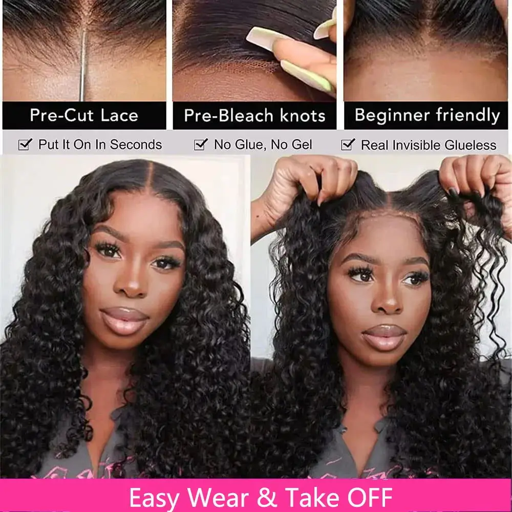 Hair Color: #1B, Ships From: United States, Stretched Length: 10inches, Density: 150% - Water Wave Bob Wig Glueless Preplucked Human Wigs Ready To Go 13x4 Frontal Brazilian Wigs HD Transparent Lace Wig Deep Curls