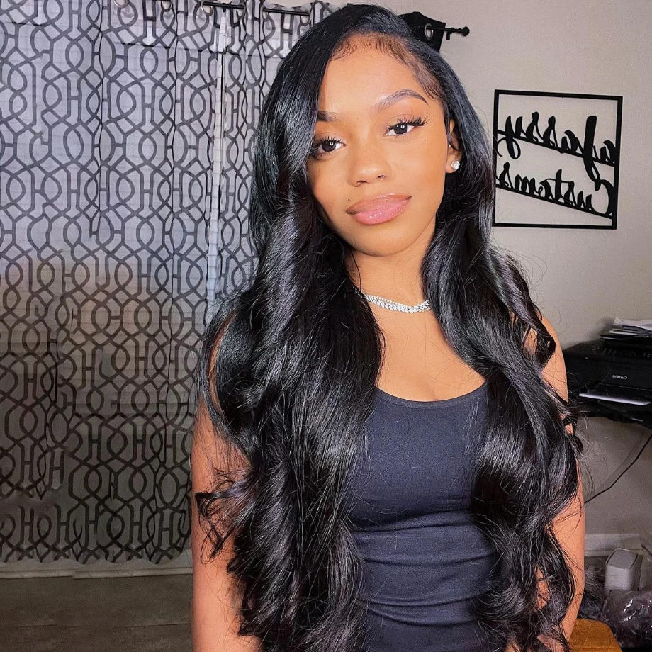 Hair Color: #2, Stretched Length: 18inches, Density: 200%, Ships From: CHINA - 30 38 Inch 13x6 HD Body Wave Lace Front Wig Pre Plucked Black Loose Wave 13x4 Lace Frontal Wig 100% Human Hair Wigs For Women