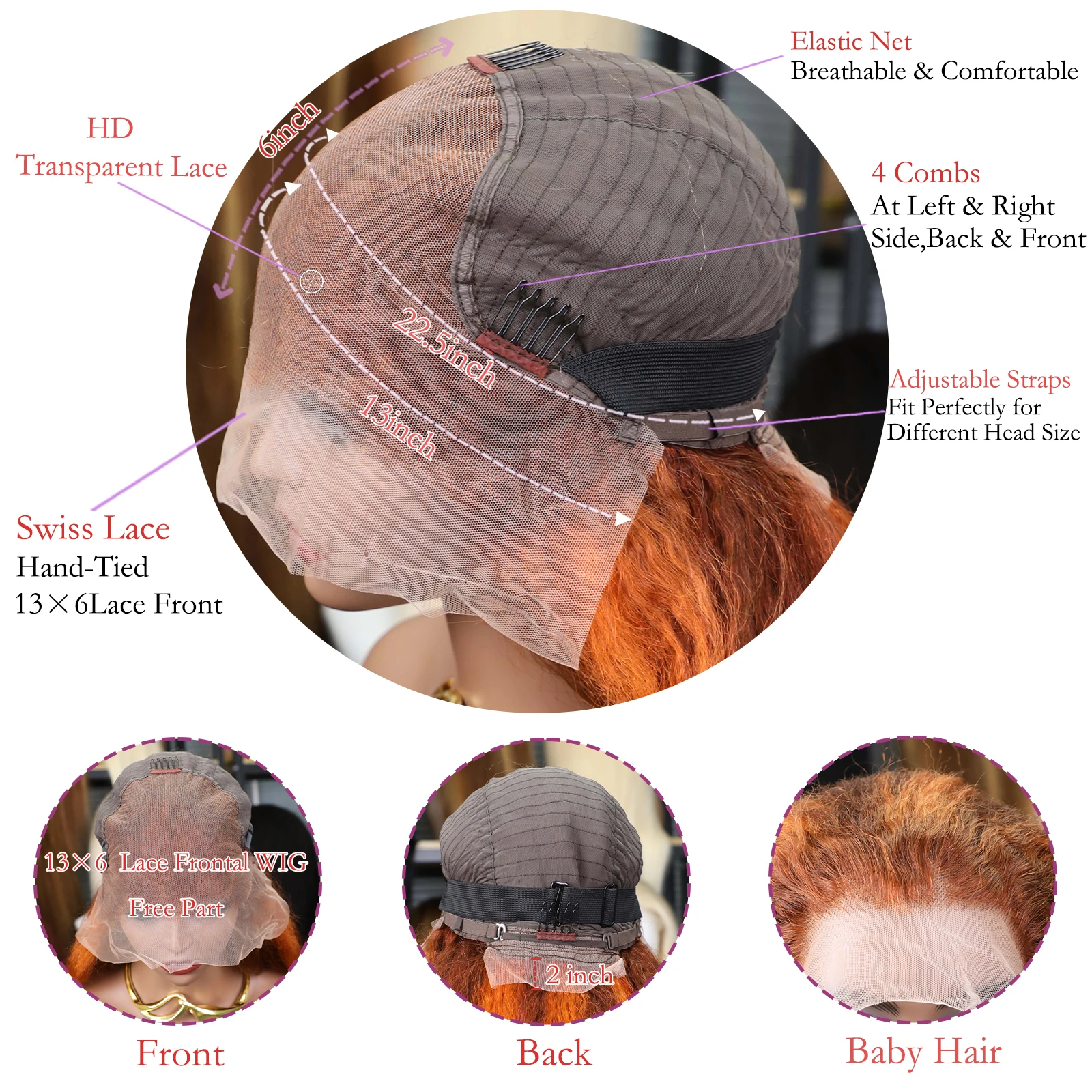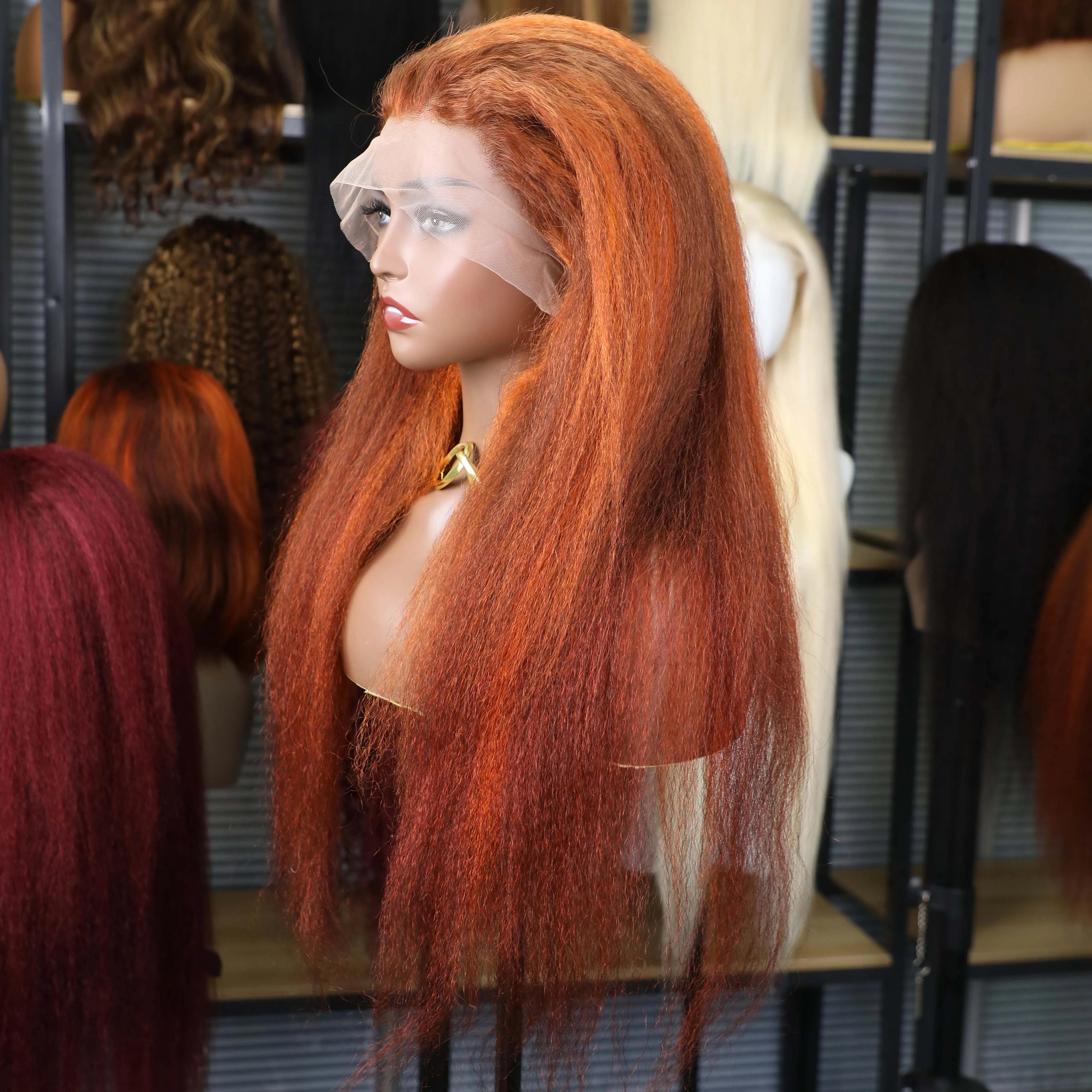 Hair Color: #2, Stretched Length: 20inches, Density: 220% - 4/350 Piano Color Kinky Straight 13x6 Lace Frontal Human Hair Wigs Highlight Ginger Orange Brown Color Remy 13x4 Lace Front Wig