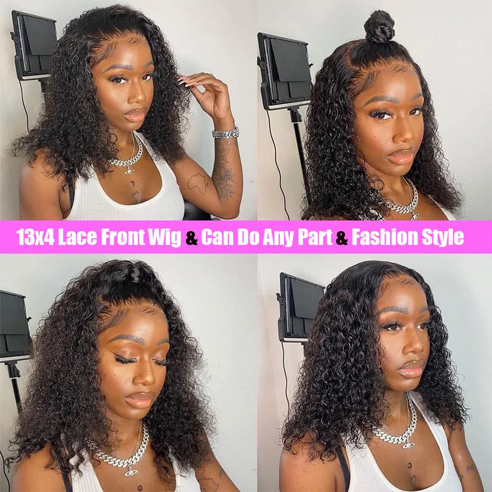 Hair Color: #4, Stretched Length: 16inches, Density: 180% - Glueless Brazilian Hair Wigs Bob Wig Human Hair 13x4 Lace Frontal Wig Human Hair Natural Remy Short Curly 4X4 Lace Closure Wigs