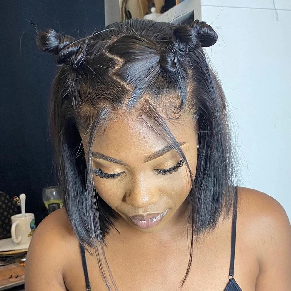 Hair Color: Natural Color, Ships From: CHINA, Stretched Length: 16inches - 180% Short Bob Wig Lace Front Human Hair Wigs For Women Human Hair Bone Straight Human Hair Wig Transparent Lace Frontal Wig