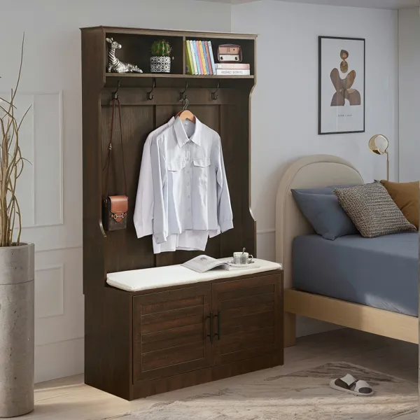 Multiple Hooks: Equipped with several hooks or pegs for hanging coats, bags, hats, and scarves, allowing you to keep your