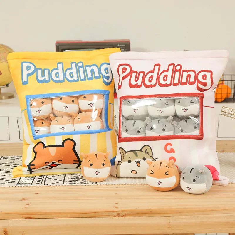Made from high-quality, soft materials, the Hamster Pudding Bag is not only cute but also safe for kids to play with. The doll is designed to be huggable, with a plush exterior that makes it perfect for cuddles and comfort. Its charming, cartoon-like features and cute, friendly appearance make it a delightful gift for any child who loves stuffed animals.