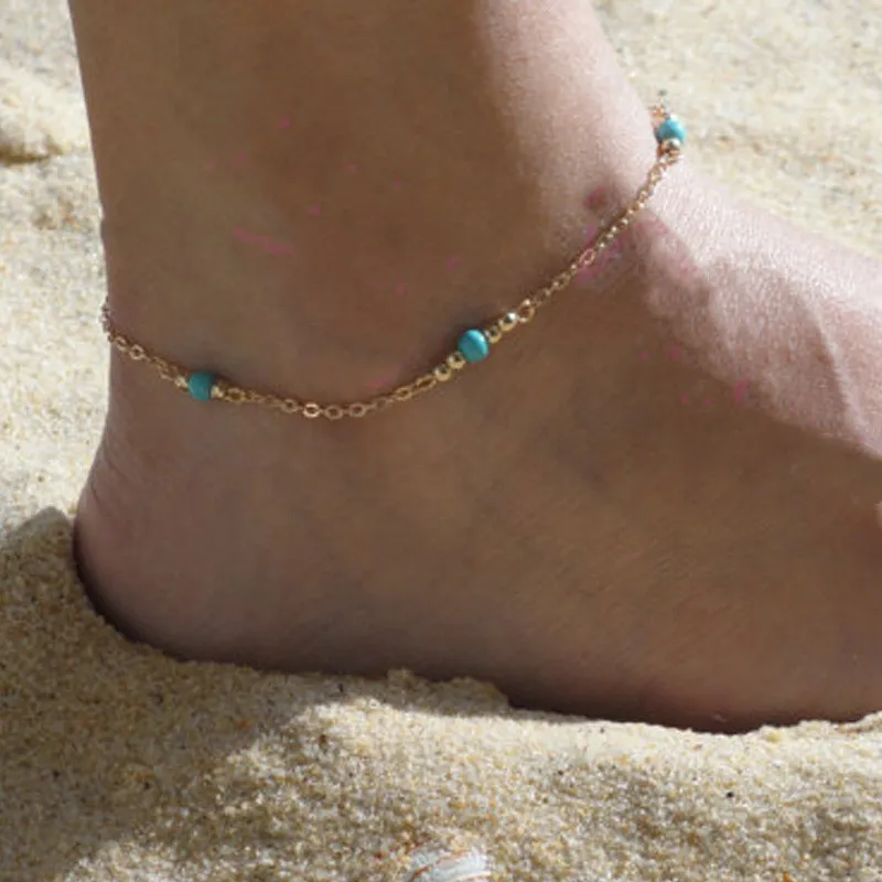 Hand Beaded Blue Turquoise Anklet