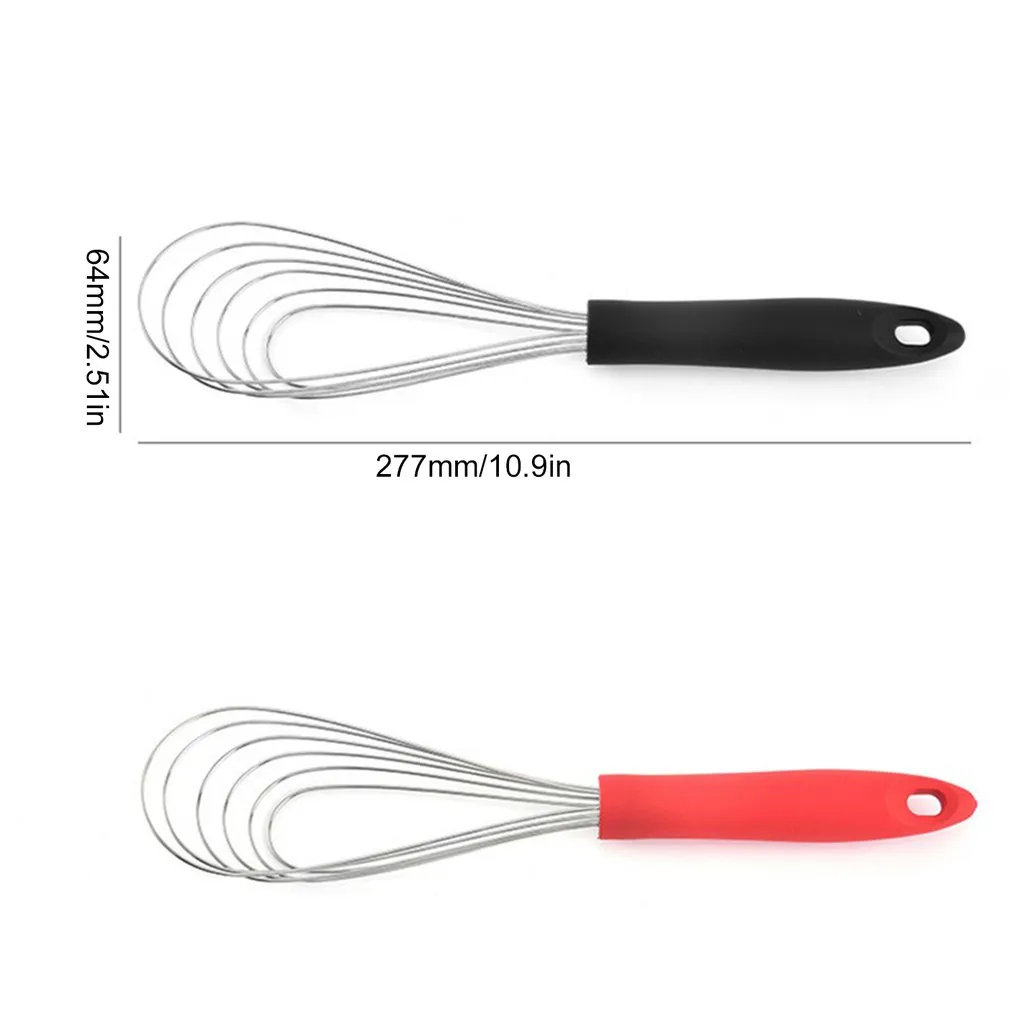 1. The whisk has a unique shoe horn shape and is made of durable 2mm stainless steel with 2mm soft silicone coating threads, will not