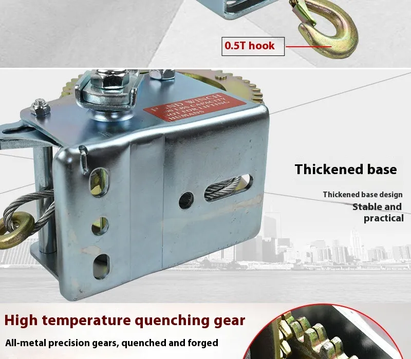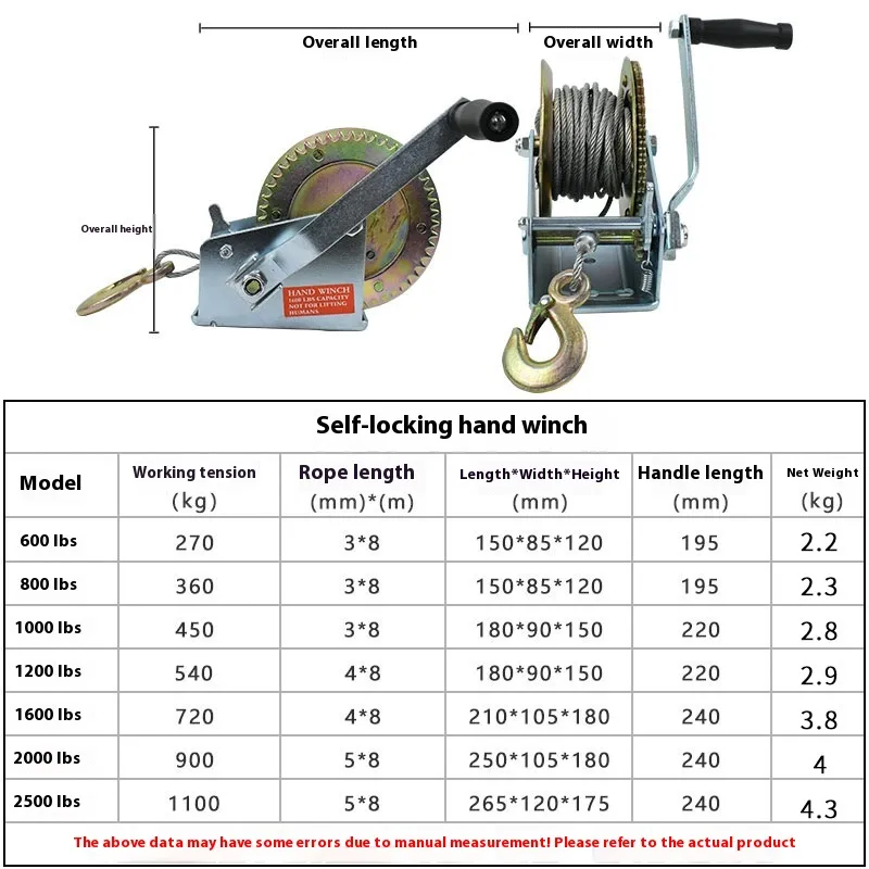 Specification: 800-pound manual winch [with 8 m cord hook]