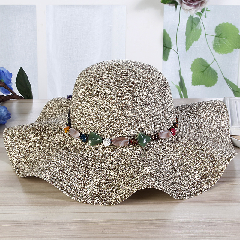 Hand-Woven Read Strange Stone Decorative Straw Hat Woman