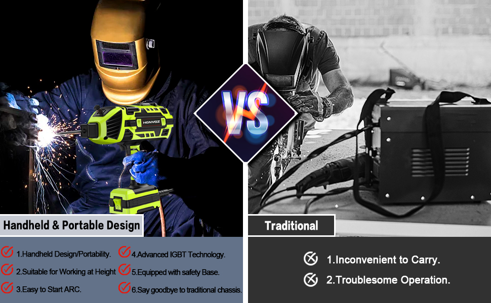 - Time and Money Saver: Our ARC Welder handheld adopts advanced IGBT inverter technology. Superior arc welding performance, good arc stability, can reduce copper and iron damage, improve the efficiency and reliability of the welder, less spatter, and smooth weld, achieve perfect welding. Perfect for home DIY, professional welding and general repairing work