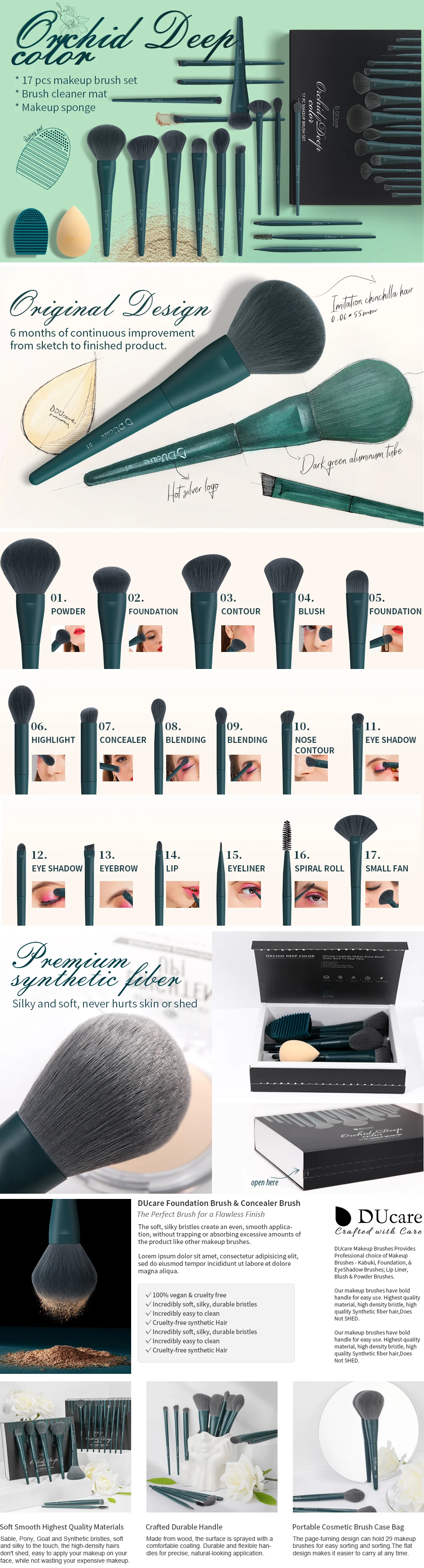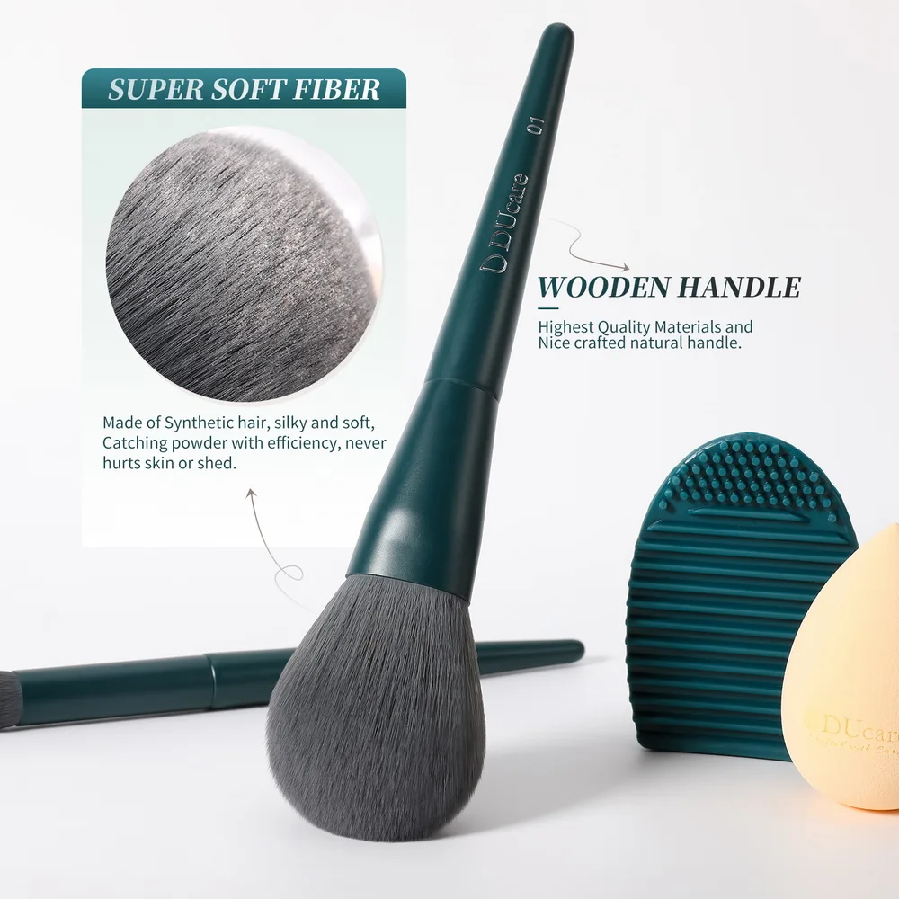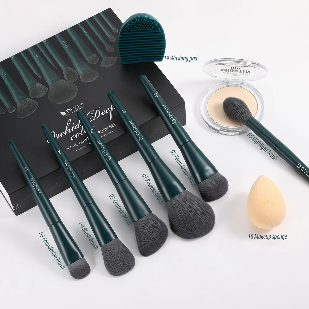 Handle Color: Green, Ships From: CHINA - DUcare Professional Makeup Brushes kits Synthetic Hair 17Pcs with Sponge & cleaning tools Pad for Cosmetics Foundation Eyeshadow