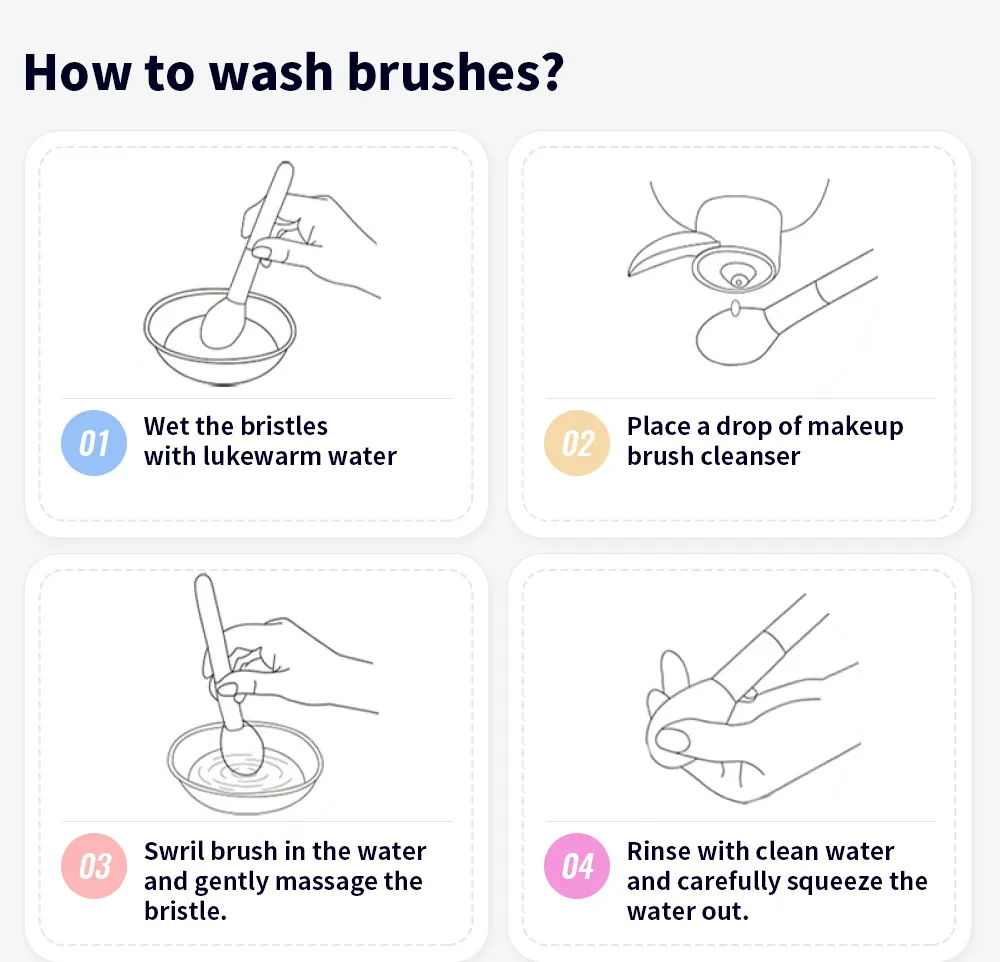 1. If it's a brush you use daily, we recommend washing it weekly with soft soap warm water.