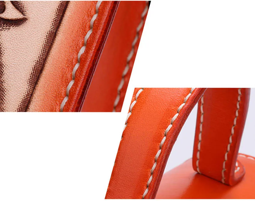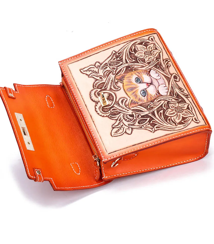 Handmade First Layer Cowhide Engraved Cat Handbag