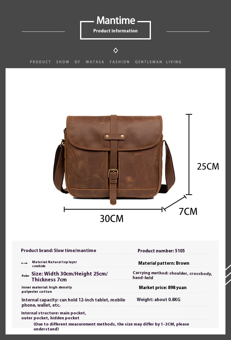 Handmade Genuine Leather Crossbody Shoulder Bag: Effortless European and American Style