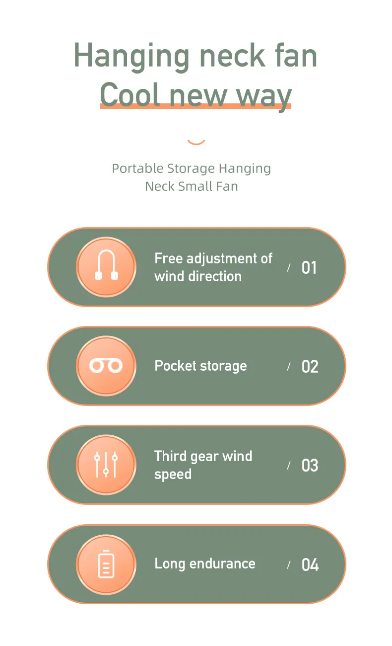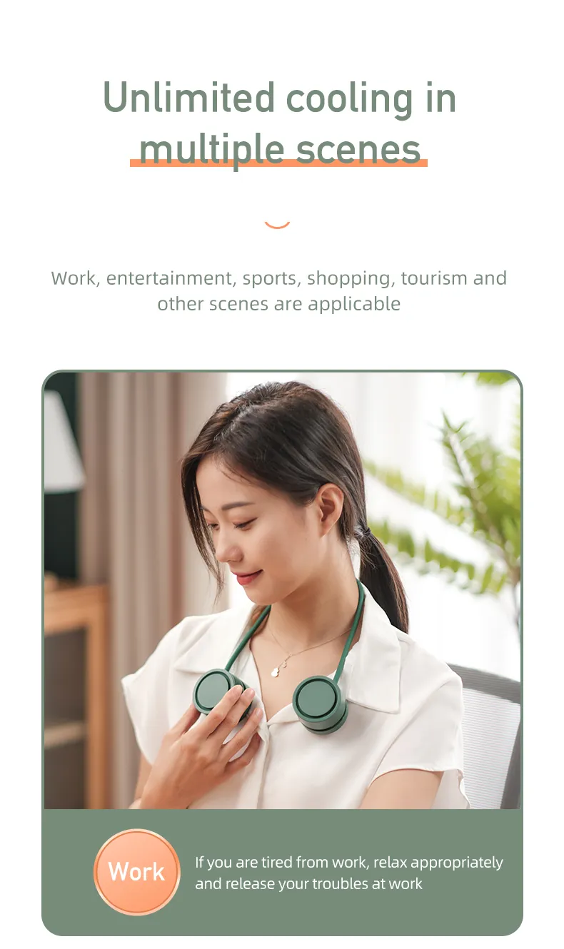 On a hot summer day, enjoy the refreshing breeze and comfortable fragrance, this hanging neck fan will bring you a new fan experience. The