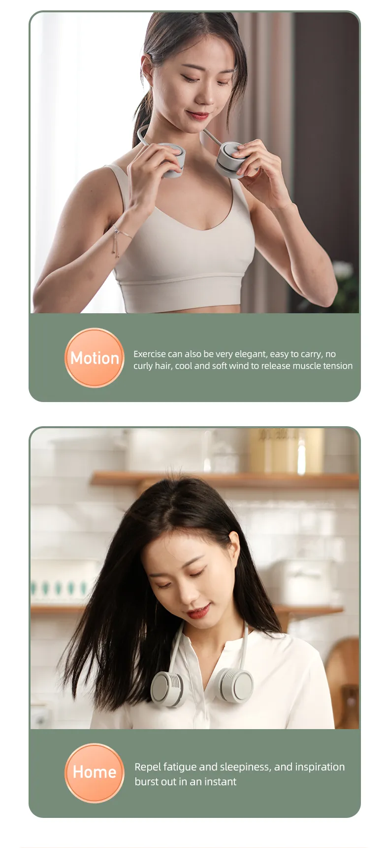 - Neck hanging design: Lightweight neck hanging design releases hands and keeps you cool even in action.