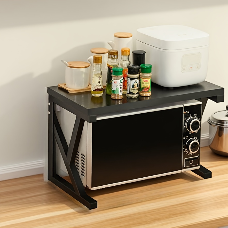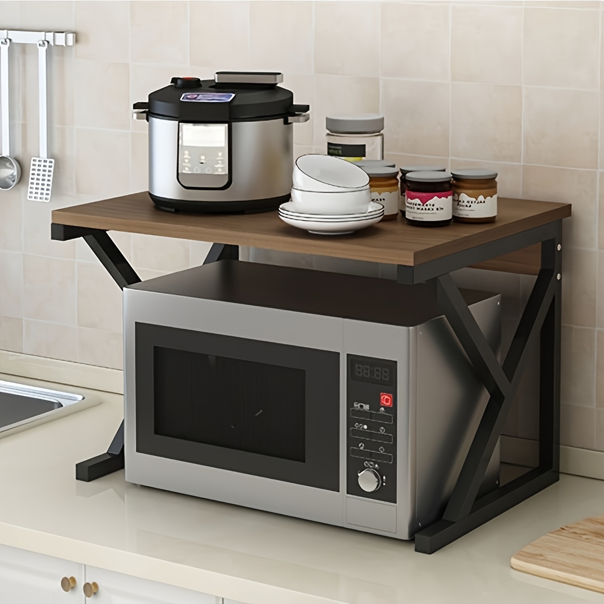 The two-tier design offers ample space for organizing kitchen essentials like microwaves, coffee makers, spice jars, or other appliances,