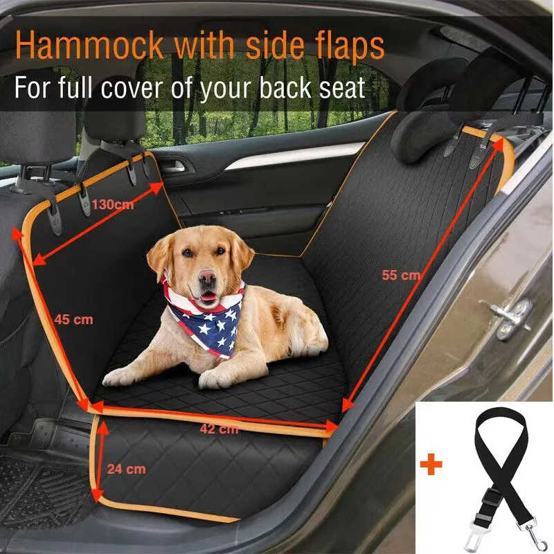 Durable and Heavy-Duty Construction This car seat cover is crafted from high-quality materials, including a hard bottom that ensures durability and stability. The multi-layered design supports weights up to 380 lbs, making it suitable for dogs of all sizes. The heavy-duty construction also protects your car's interior from scratches, dirt, and fur. Waterproof and Easy to Clean The waterproof layer effectively guards against spills, accidents, and wet fur, keeping your car clean and dry. The material is easy to wipe down and machine washable, making maintenance a breeze. Enhanced Comfort and Safety The seat cover features a plush, padded surface that provides maximum comfort for your dog. The anti-slip bottom ensures that the cover stays in place, preventing your pet from sliding around during the ride. Additionally, it comes with adjustable seat belts and safety straps to keep your dog secure. Universal Fit and Easy Installation Designed to fit most car models, including SUVs, trucks, and sedans, the cover installs quickly and easily. The adjustable straps and buckles allow for a snug fit, ensuring that the cover stays in place throughout your journey. Multi-Functional Design This versatile cover can be used as a hammock, back seat extender, or cargo liner, offering flexibility based on your travel needs. It also features multiple pockets for storing pet accessories, toys, and other essentials.