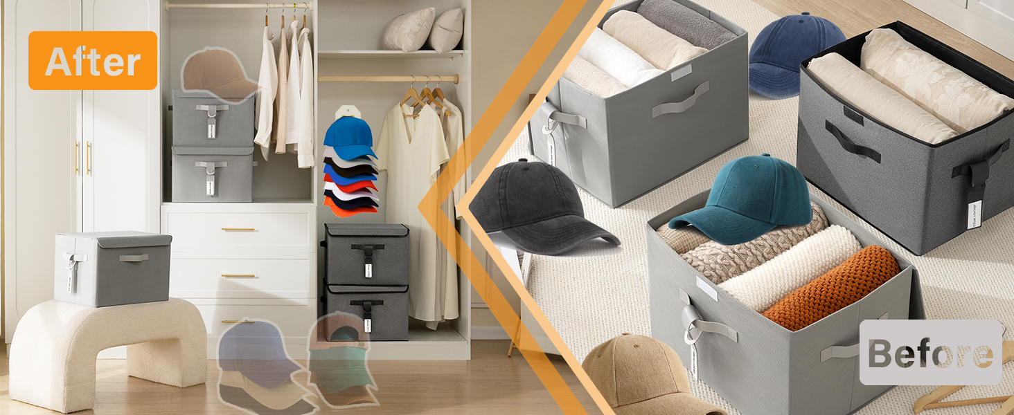 The adjustable features of the hat organizer make it highly customizable, ensuring that it accommodates various types of hats with ease. The different designs (wall-mounted, hanging racks, or stackable boxes) cater to diverse preferences and needs. With this organizer, your hats will stay pristine, and you'll never have to worry about them getting crushed or lost again.