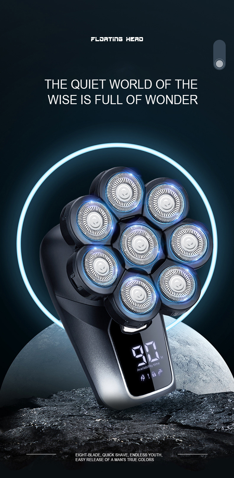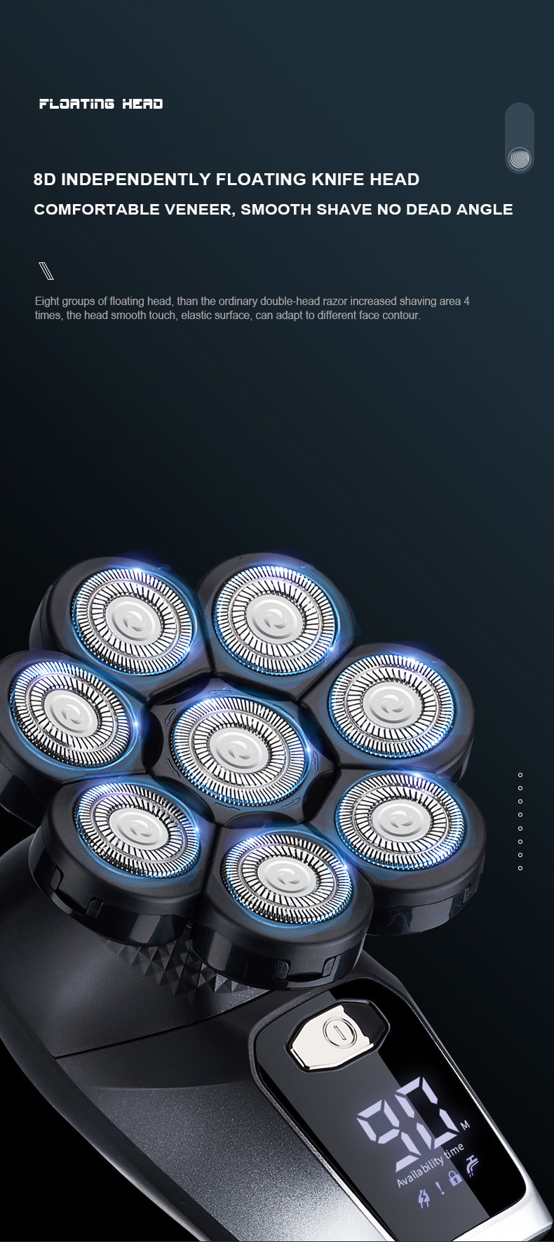 Description – HATTEKER Professional 8 Heads Shaver Multifunctional 6-in-1 Cordless Electric Shaver for Men