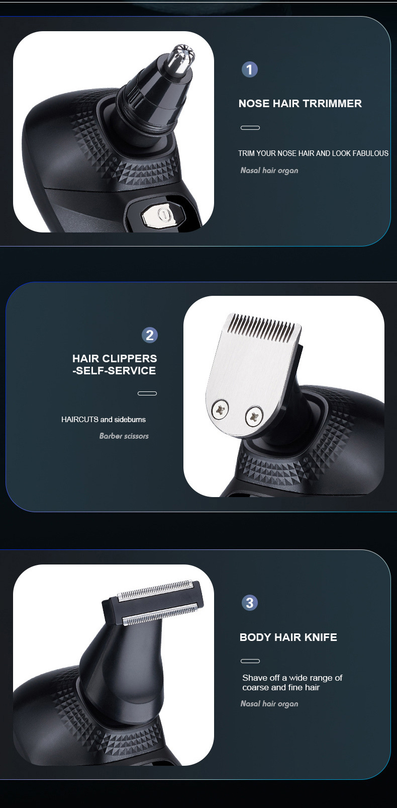 6-in-1 Multifunctional Design: Includes 8 precision heads for various grooming tasks, including shaving, trimming, and detailing, making it a versatile tool for all your grooming needs.