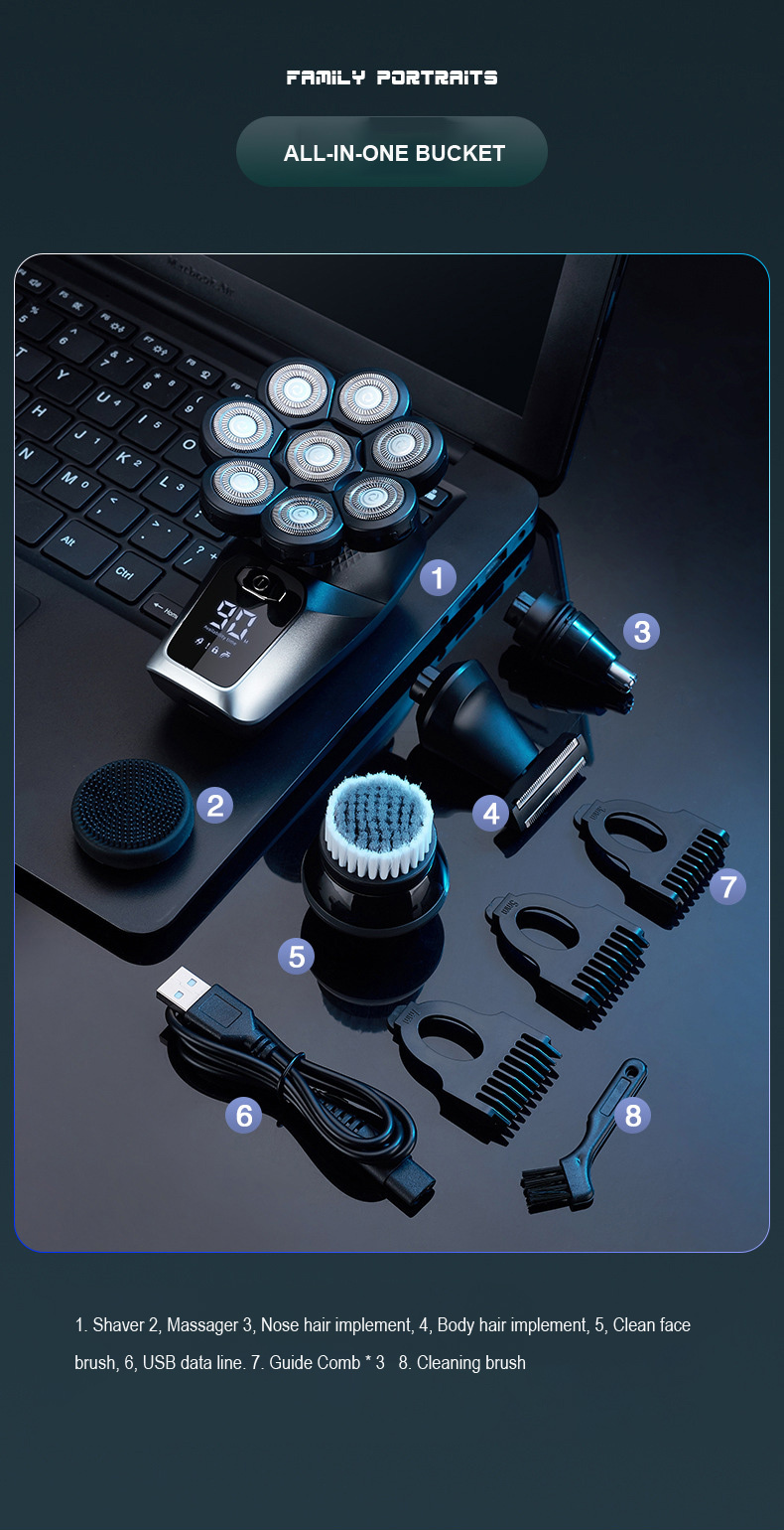Perfect for All-in-One Grooming – 6-in-1 Multifunctional Cordless Shaver with 8 Precision Heads