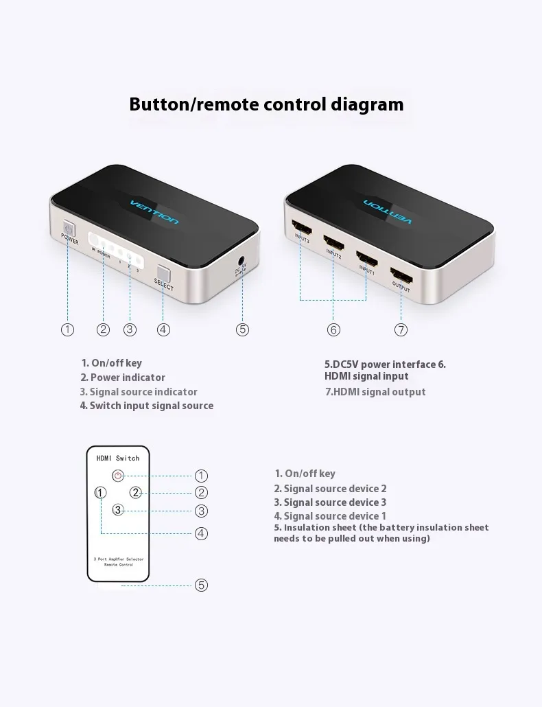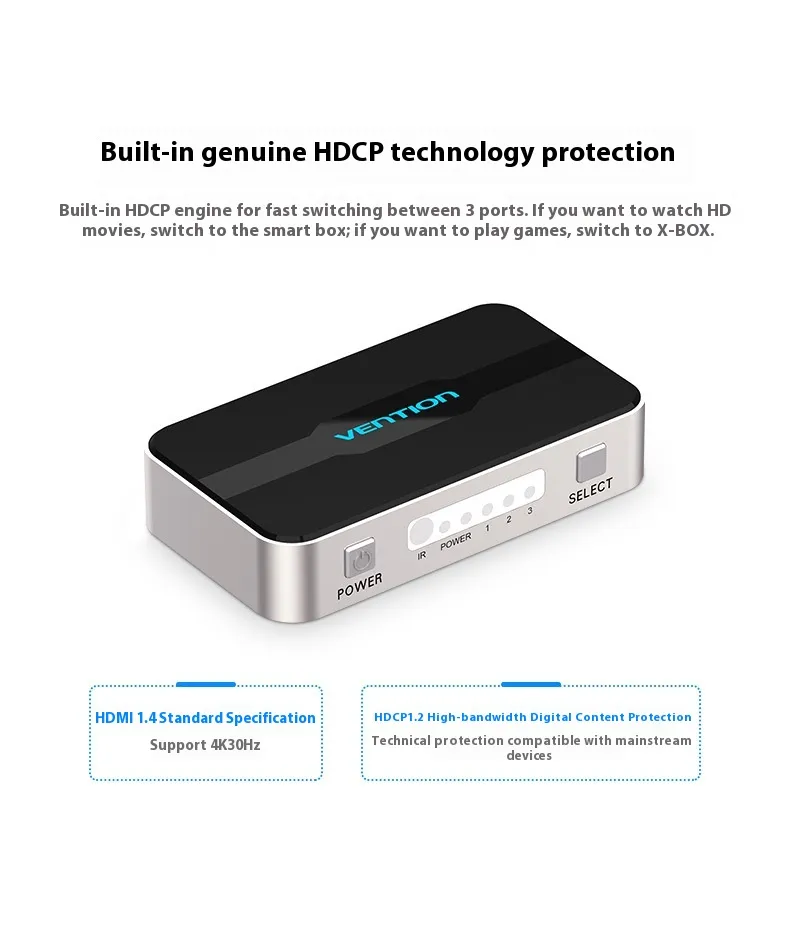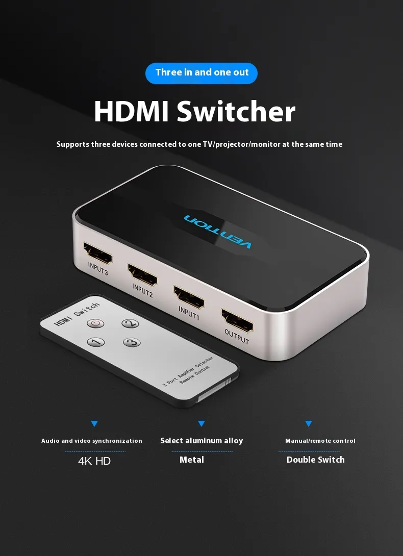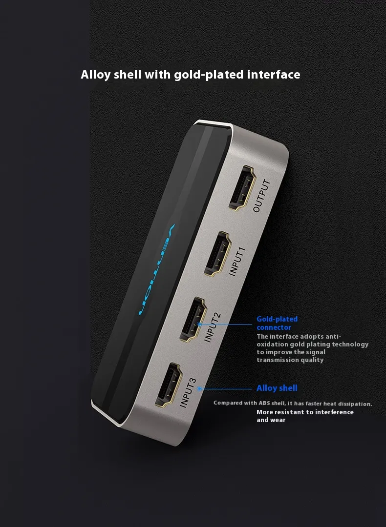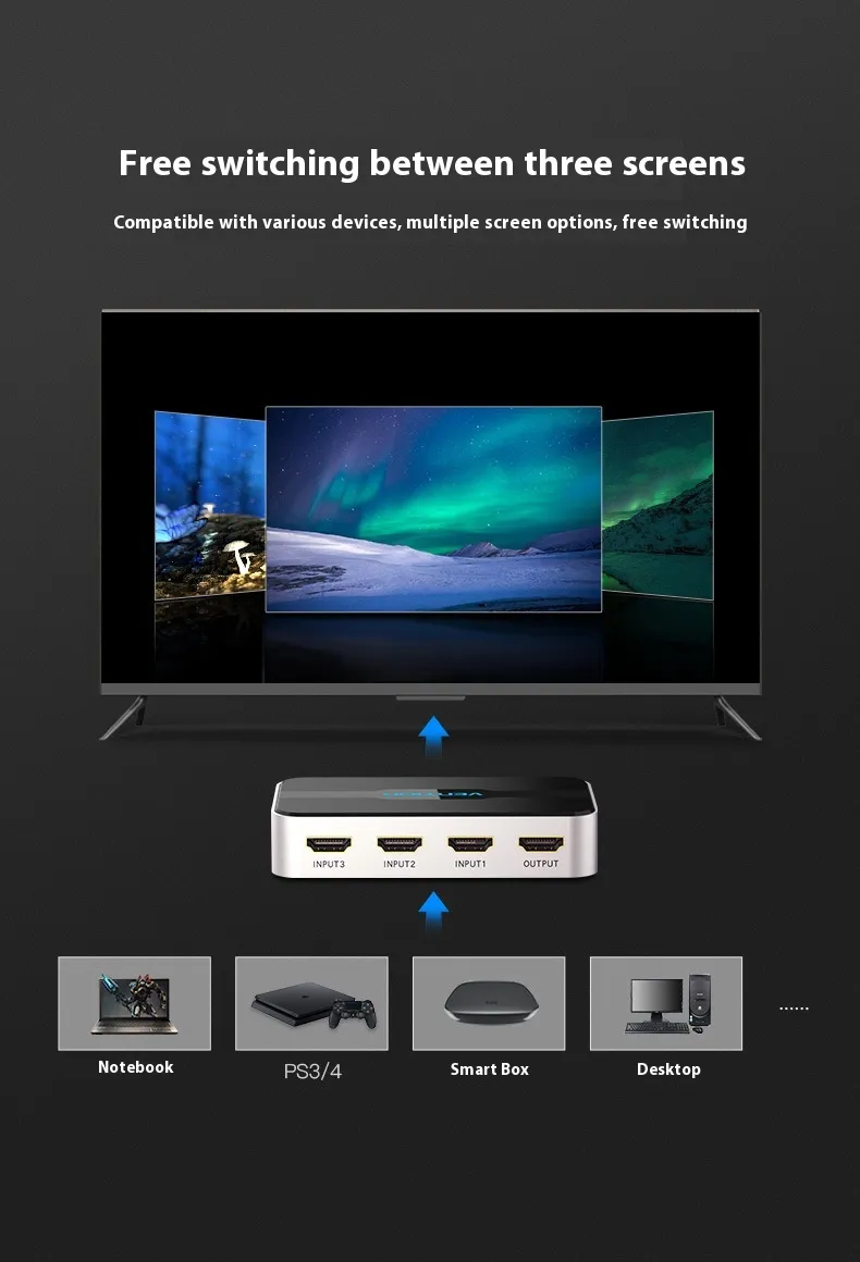 - 3 Inputs, 1 Output: Connect three devices (e.g., gaming consoles, streaming boxes, Blu-ray players) to one HDMI port.