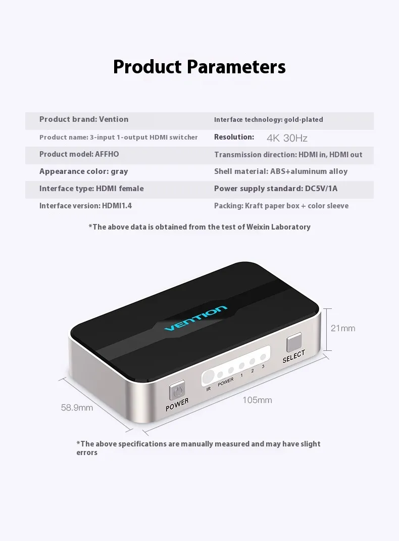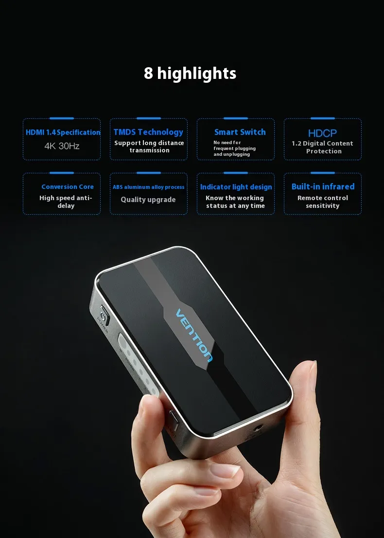 Enhance your entertainment setup with the HDMI Switcher 3-input 1-output. Enjoy the convenience of switching between devices with ease, and keep your space organized without sacrificing performance.