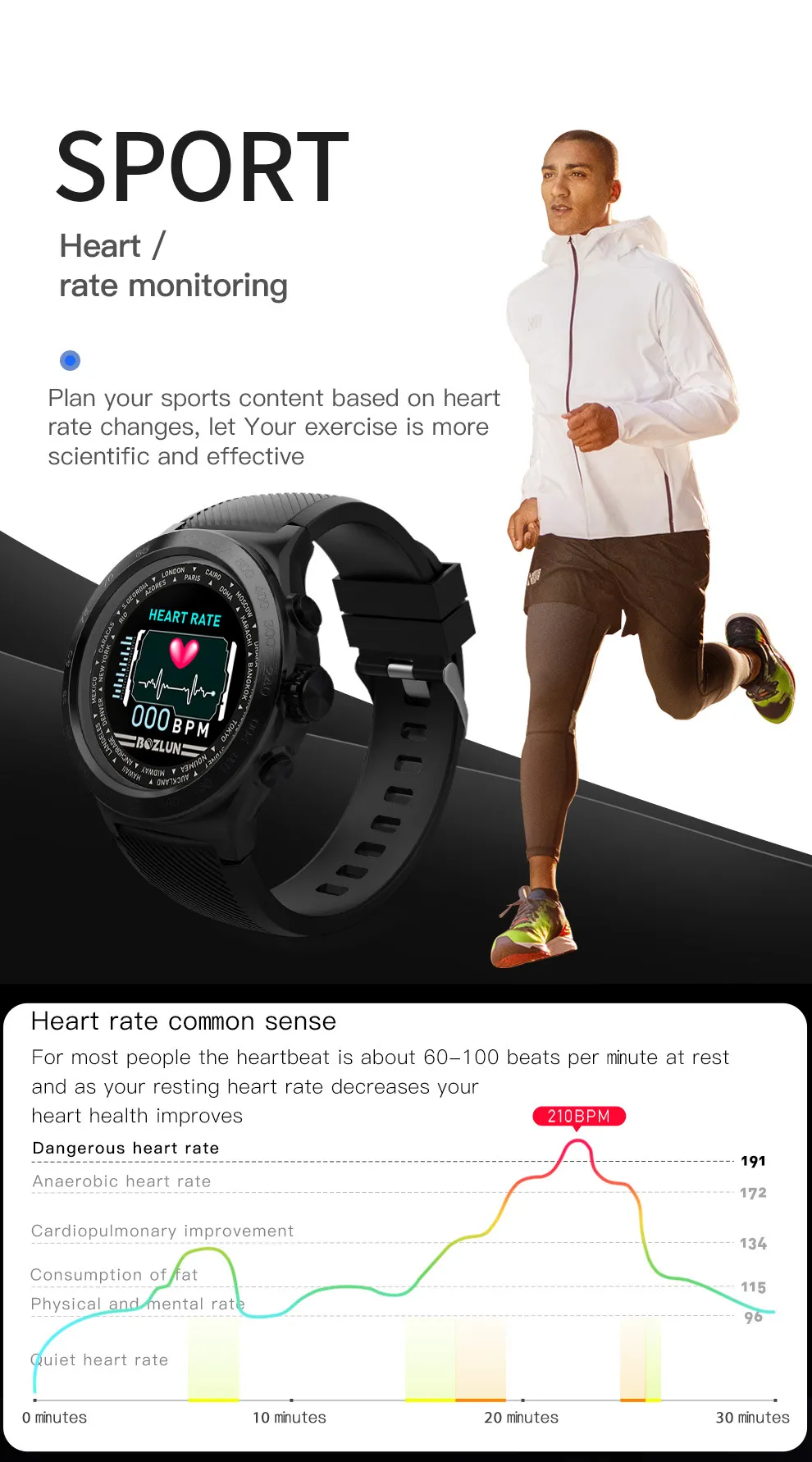 The smart watch offers multiple sport modes, allowing you to choose your activity and get detailed tracking of your performance. Whether you’re into running, cycling, hiking, or yoga, this watch monitors your specific activity and provides insights into your efficiency, calories burned, and exercise duration, helping you optimize your fitness routine.