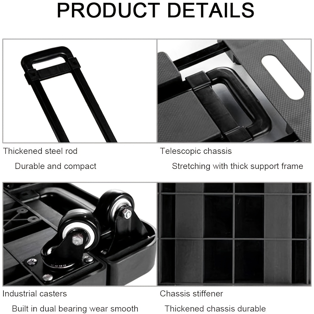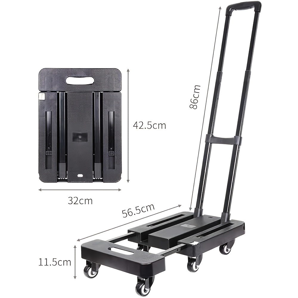 Designed to be compact and portable, this cart easily folds for convenient storage when not in use, making it ideal for use in tight spaces like your car trunk, home closet, or warehouse. The heavy-duty construction ensures that this trolley can withstand frequent use, offering long-lasting performance in various environments.