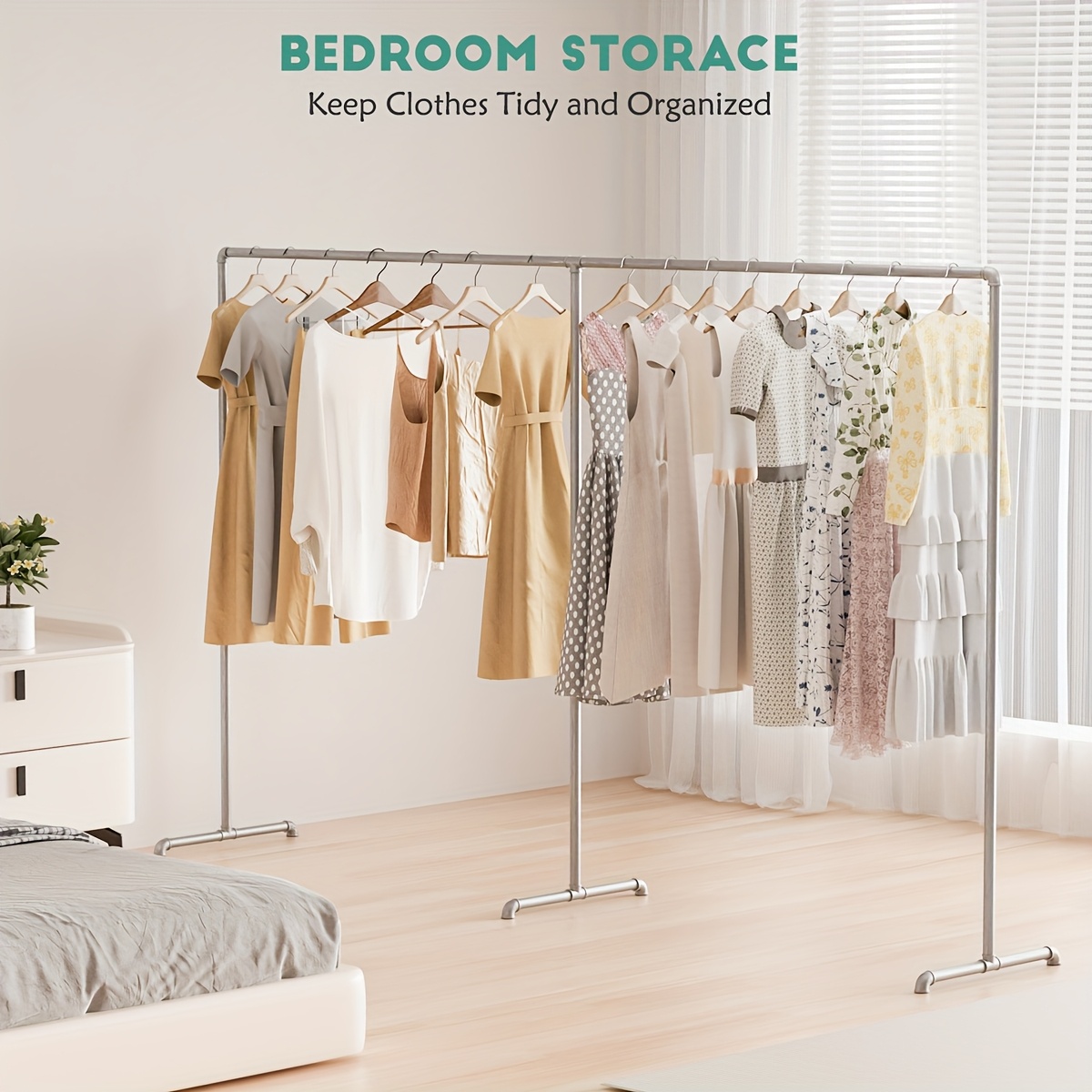 - Heavy-Duty Pipe Frame: The rack is made from durable metal with a robust pipe frame, ensuring stability and the ability to handle heavy garments and multiple items.