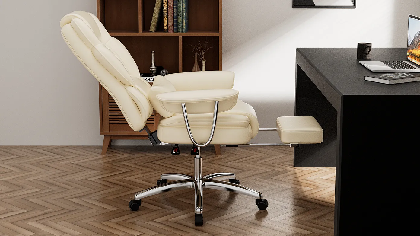 Product Name:Office Chair, Big and Tall Executive Office Chair with Footrest, Leather Computer Chair, Ergonomic Reclining Chair High Back , Large Home Office Chair (Beige)