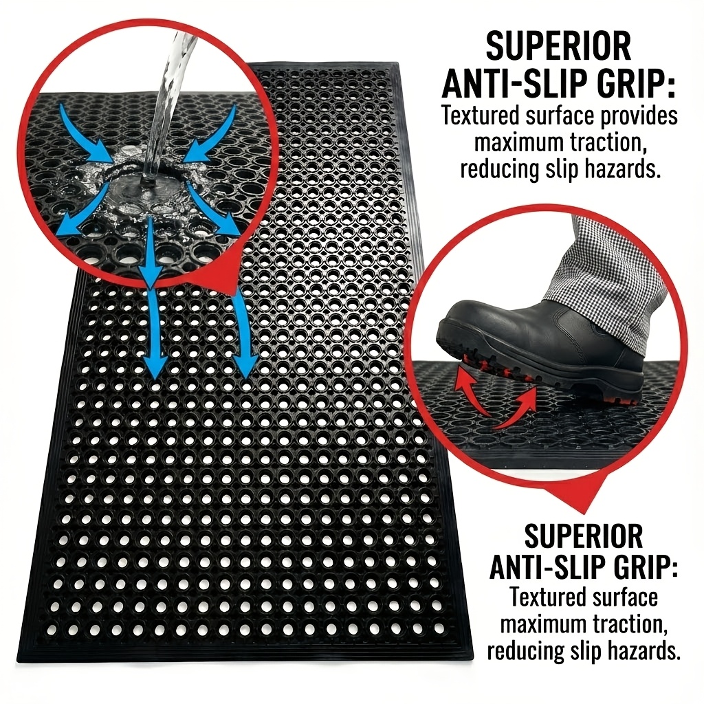 Easy to Clean: The rubber material is easy to wipe clean, while the drainage channels ensure that the mat stays free of debris and liquids.