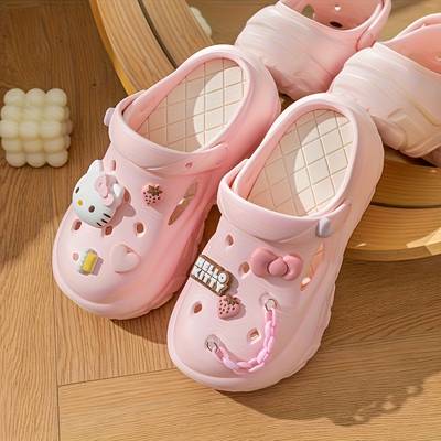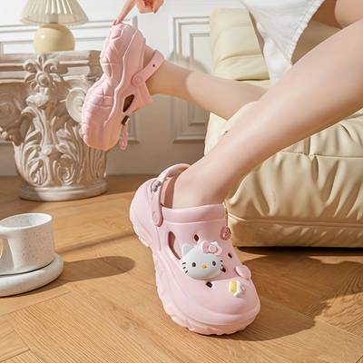 Featuring an iconic Hello Kitty face cutout (hollow design) on the upper, the sandals bring a cute and playful aesthetic perfect for daily use, beach days, playground activities, and casual outings. The thick sole provides extra comfort and cushioning, making them ideal for long walks or relaxed everyday wear.