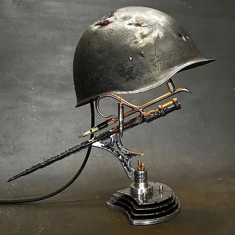 Unlike traditional lamps that focus only on illumination, this lamp serves as both a light source and a decorative statement piece. Its helmet-inspired shape adds a strong visual identity that transforms ordinary lighting into artistic decor.