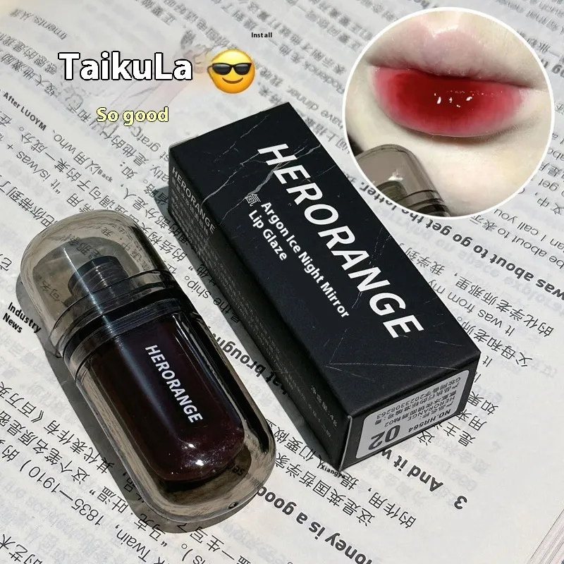 HERORANGE Ice Night Mirror Lip Lacquer, long-lasting lip lacquer, mirror finish lip gloss, bold lip color, high-shine lip lacquer, glossy lip lacquer, moisturizing lip color, non-fading lip lacquer, mirror shine lip gloss