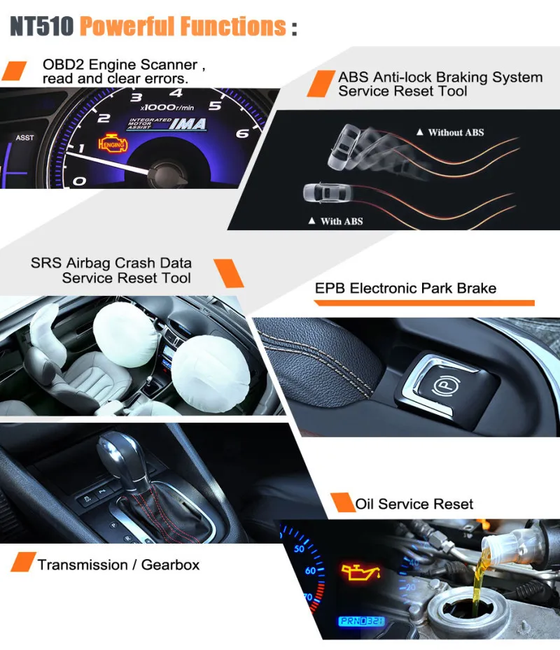 Funciones: 1. Escáner de motor y transmisión OBD, lectura y borrado de códigos de error.