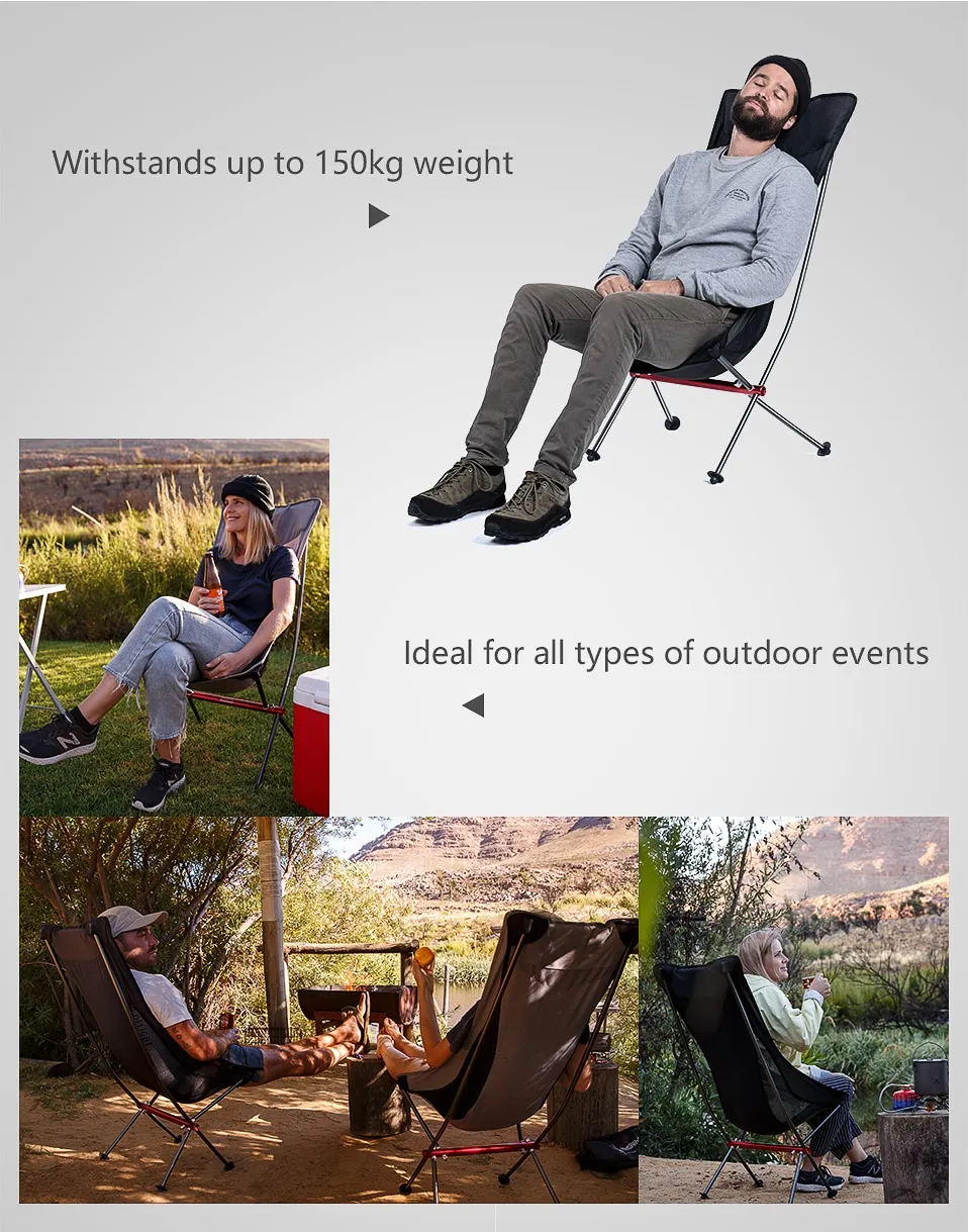 This type of chair is especially useful for outdoor activities where relaxation and comfort are priorities. Whether sitting around a campfire, fishing beside a lake, or watching outdoor events, the high-back design allows users to lean back and relax.