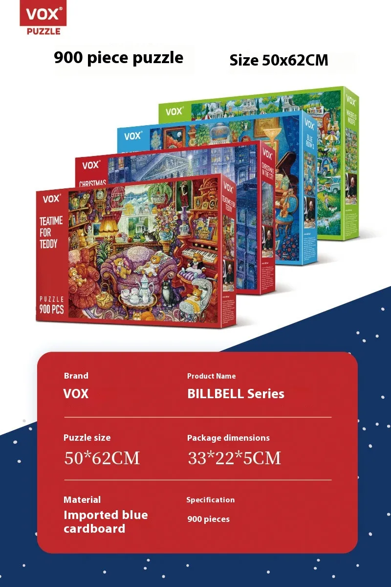 Color: VE1000-131 dog show 900 pieces, VE1000-132 Teddy's afternoon tea 900 pieces, VE1000-135 Blue Room No. 3 900 pieces, VE1000-128