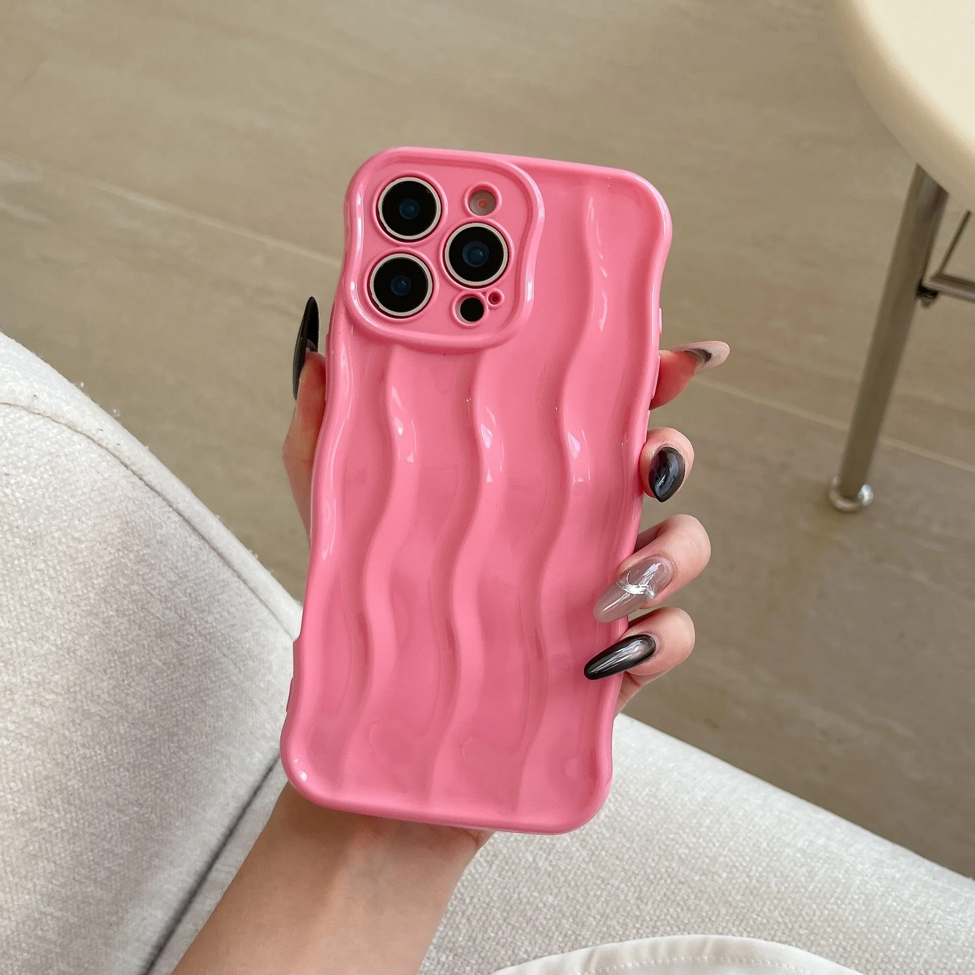 High-Grade Wave Stripes Phone Case – Solid Color & Simple Design