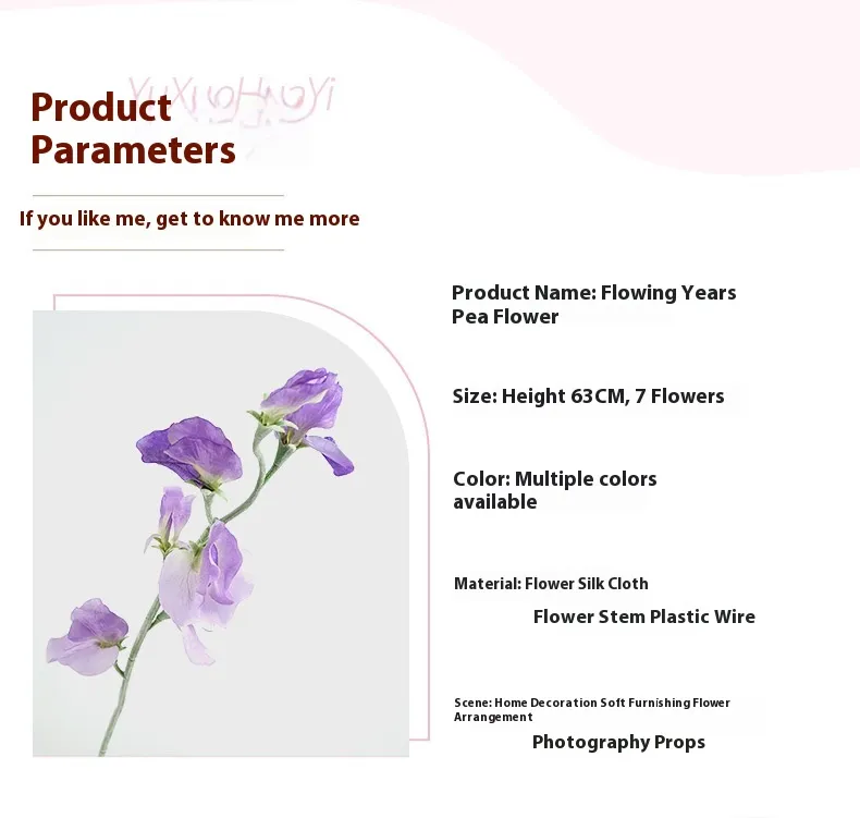 Whether displayed solo in a vase for a minimalist look, combined with other stems for a fuller arrangement, or incorporated into DIY floral projects, the artificial pea flower stem delivers lasting elegance that complements a wide range of décor styles.
