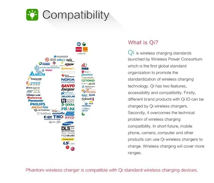 Compatible for all QI standard wireless charging devices