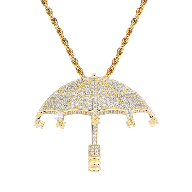 Add a distinctive edge to your jewelry collection with the Hip-Hop Umbrella Pendant, a statement piece that combines hip-hop style with a unique, eye-catching design. Crafted with meticulous attention to detail, this pendant features a miniature umbrella that adds a playful and symbolic touch to any outfit. Made from high-quality materials and available with dazzling stone accents, the Hip-Hop Umbrella Pendant brings a touch of luxury to streetwear fashion, making it an essential accessory for those who love to stand out.