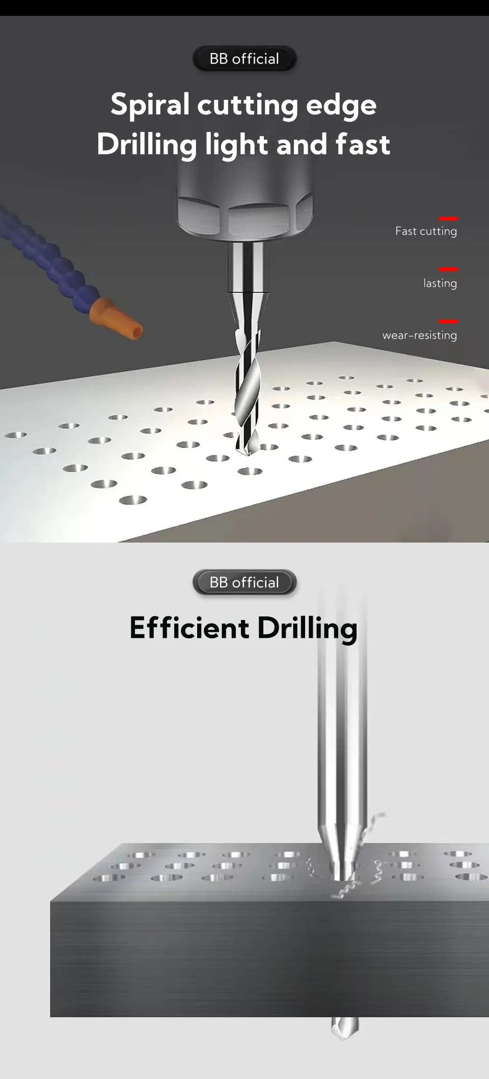 -The whole bit is made of Solid Carbide, which makes the bit more durable. But it also makes it easier to break, so it's forbidden to use electric hand drills and unstable machining environments.
